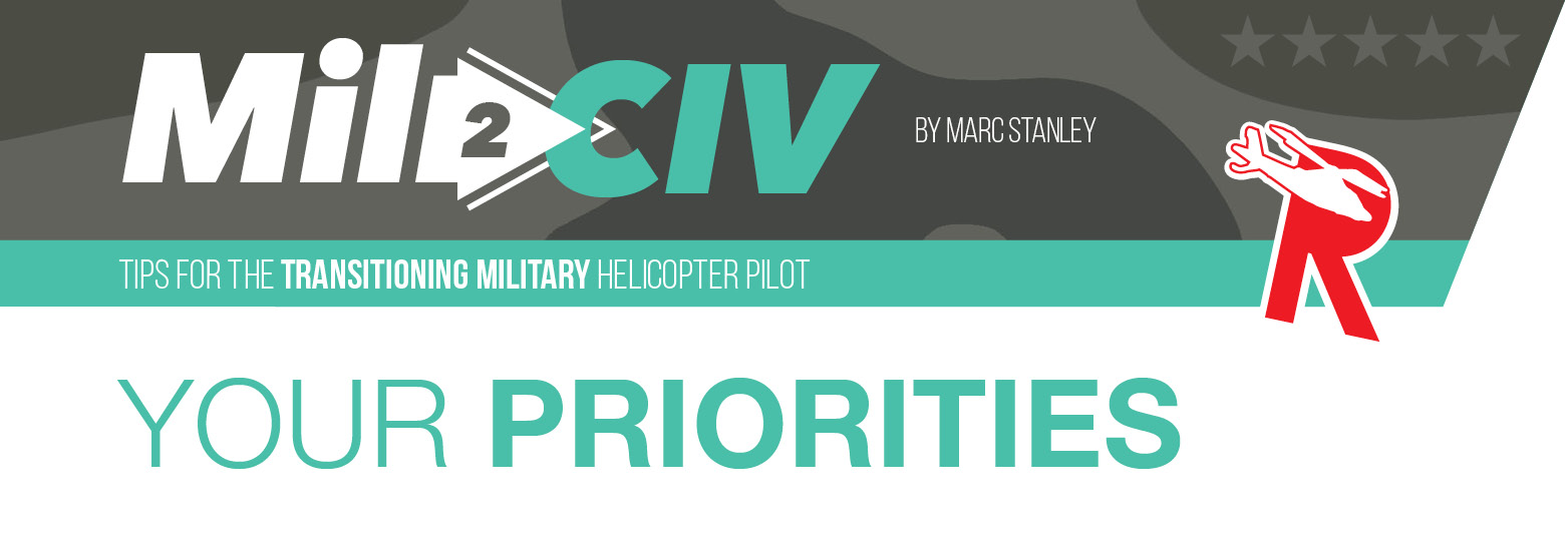 If a specific location is top of your list, then you are going to exclusively look for jobs in that area. Yes, sometimes this does limit your options, but these are your priorities you chose. Another example of this would be equipment, let’s say you flew Blackhawks in the service and want to continue to fly them in your next career. Then the best options are to look at getting a job in the firefighting industry or go back to working for the government flying for Customs and Border Protection. There are multiple examples that could be made.