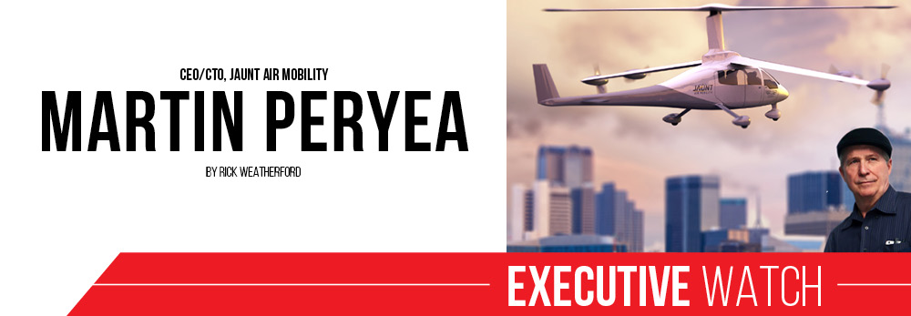 "I have a love and hate type of thing with helicopters," Martin Peryea says with a little laugh. Indeed, he should have mixed feelings. The CEO and chief technology officer of Jaunt Air Mobility, a leading new company on the frontier of electric vertical takeoff and landing (eVTOL) aircraft, spent decades researching and developing traditional helicopters for Bell Helicopter and headed up that manufacturer's futuristic aircraft development organization, Xworx. For years, he's worked in the trenches of helicopter development and fought against traditional rotorcraft shortcomings. “Rotorcraft design is probably the most challenging issue in all of aviation," he says. "I appreciate it's tough to take new technologies to market because of certification and regulatory costs. In addition, every new rotorcraft program throws a flurry of technical issues at you. I don't like how we still have acoustical signature helicopter noise issues and safety issues that haven't been fully addressed."