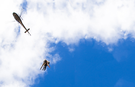 Helicopters utilized to date are the Bell 407, AS350 B3 Squirrel, Augusta Koala and Huey. Safety is of prime importance for this challenging and unique undertaking, so experienced pilots and capable aircraft are important. Bronte Heinrich was the pilot on the last few operations using Savannah Helicopters’ AS350 B3. He has extensive experience in firefighting, live-line power line repairs, longline, aerial filming, and aerial construction.