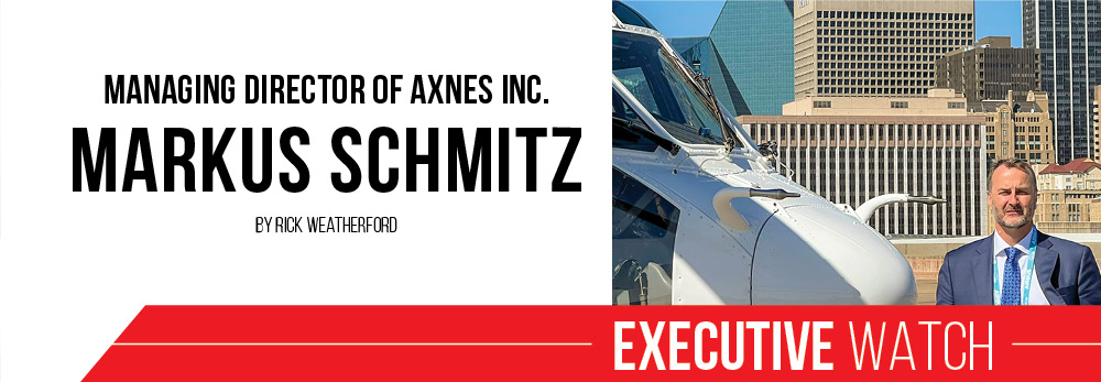 “The helicopter industry is a comparatively small industry that almost has a family feel,” says Markus Schmitz. It’s a family that the managing director of Axnes Inc. has wanted to belong to much of his life. Upon graduating from the University of Applied Science at Aachen in his native Germany with an aerospace engineering degree , the 1998 graduate had to make a choice. One road led to his designing fixed-wing airframes. The other road led to Eurocopter in Donauwörth where Schmitz was offered his way to helicopters. Schmitz took the wanderlust path. “I chose Eurocopter because I wanted to work in the helicopter industry and with its customers and see the world,” he says.