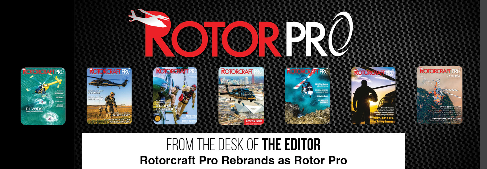 Beginning with this issue, our vertical lift industry media company Rotorcraft Pro, will rebrand itself to be Rotor Pro in order to broaden its horizons in an evolving industry.
