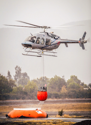 “Some urban interface areas want a belly tank because there can be a risk that a bucket could be mistakenly released where a belly tank cannot. The belly tank is fully attached to the aircraft. The Bambi Bucket® can be on a hook and the pilot can release what is on the hook if they are in trouble. It is done in a controlled manner.”
