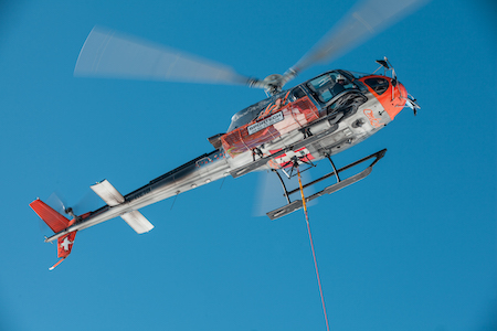 Helicopters are a main machine in mountain work, as they can reach remote sites and disappear without leaving a trace when their work is done. They make round trips in limited time, and can carry material, passengers, and other items to and from the huts. When “time is money,” helicopters save both. Imagine how many days and people it would take to maintain remote, high-altitude huts. A helicopter can reach destinations in minutes, not days. It’s a real game changer.
