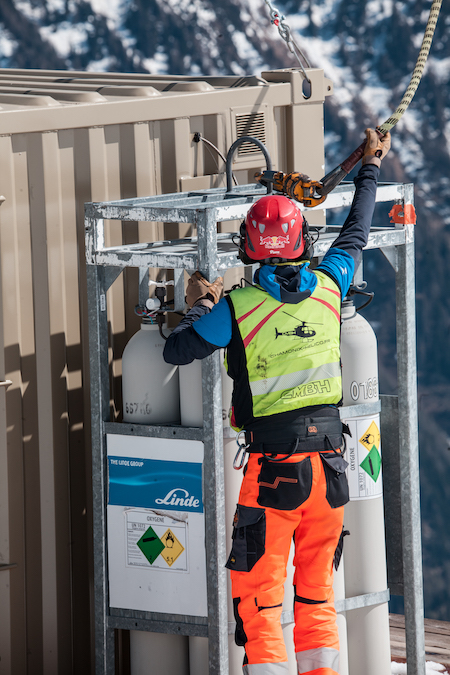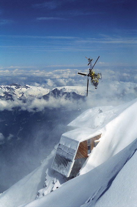 As an aerial load transport specialist, Brun has made significant contributions to the construction and maintenance of many high-altitude huts. His CMBH team was requested to assist the renovation of “Refuge Vallot” a hut located at an altitude of 4,362 meters. They’ve also worked on “Refuge du Goûter” at 3,835 meters altitude, and the fabulous Aiguille du Midi at 3,842 meters.
