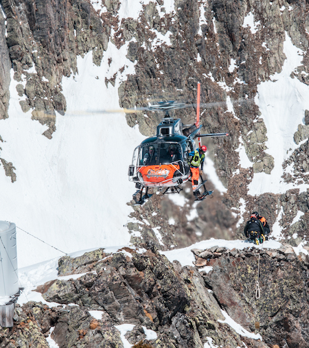 While the technicians on the mountain are managing the Gazex systems, the helicopter goes stand-by in a secured area, patiently waiting for them. When retrieving technicians, the focus is on not putting the helicopter in a dangerous situation as protruding mountainous rocks are abundant. One bad movement and the mission can quickly turn into a nightmare. Fortunately, all pilots and flight assistants have years of experience and are used to these situations. Once technicians are retrieved from a site, it’s time to go on to the next avalanche area.