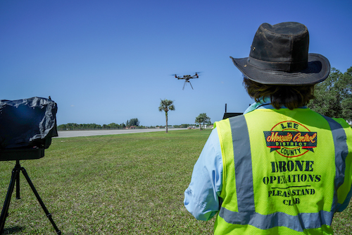 The Lee County Mosquito Control District’s UAS fleet started when the LCMCD acquired a DJI Phantom 4 Pro. “This is the platform that both accumulates the most airtime and thus requires the most service,” said Lefkow. “The Phantom is flown as an inspection vehicle prior to … sending out our autonomous drone designed to spread granular materials into the water to kill mosquito larvae.”