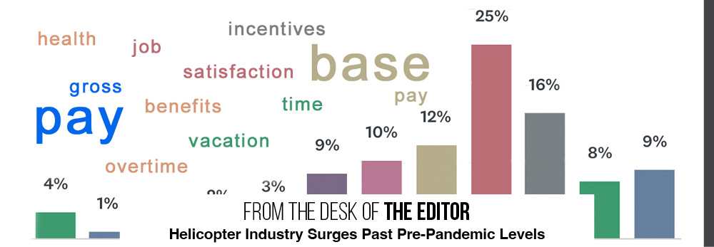 Finally, on page 54 we report results of the “Rotor Pro 2022-2023 Annual U.S.Helicopter Pilot Salary and Benefits Survey.” In this year’s report we reflect on key drivers that have led to the current pilot shortage and what the industry is doing to attract and retain experienced helicopter pilots.
