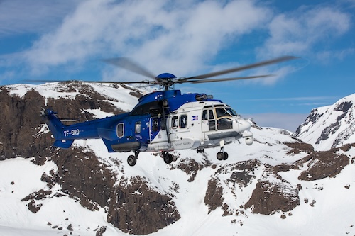 Lárusson said, “We are capable of conducting SAR, and MEDEVAC missions within the Icelandic exclusive economic zone (EEZ). The Icelandic SAR region covers a vast area of approx. 1.2 million square miles, while the EEZ is approx. 437,500 square miles. Our helicopters are specifically outfitted for rescue operations and feature external fuel tanks as standard to increase range. Additionally, we provide support to police or civil protection services, and we can deploy the helicopters equipped with Bambi Buckets in the event of wildfires.”