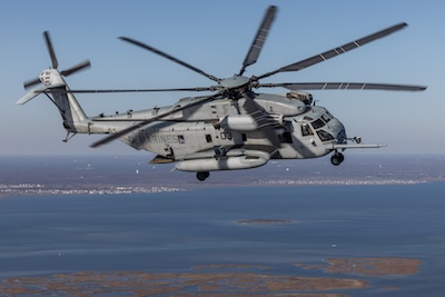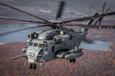 Having first entered service with the Marine Corps in 1981 and having reached the million flying hours milestone in July 2019, the CH-53E Super Stallion is still the backbone of the USMC’s helicopter transport fleet with currently around 140 aircraft in service. Over the years, airframe and avionics have been drastically refined. The CH-53E can take up to 32 passengers, and this can be expanded to 55 when the centerline seats are fitted. In the medical-evacuation configuration (MEDEVAC) the aircraft can take 24 litters and two seats or six litters with 20 seats. In the transport configuration, the cargo bay can fit six 48”x 48” pallets, or two, two-seat MRZR’s (a light utility task vehicle) or one four-seat MRZR. Externally, the CH-53E can lift 36,000 pounds either on the dual-point hook or on a single hook.