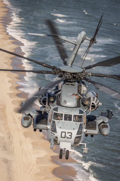 “The primary mission for our squadron is transportation of heavy equipment, troops and to provide assault support for the Marine Air Ground Task Force (MAGTF) The other role for us as a reserve unit is that we are there to support any kind of gap or anything that the active units may need a little help with, like transitioning to a new aircraft while they are busy with a turnover…..Every five years or so, a reserve unit is able to be used for deployments, UDPs (Unit Deployment Programs), or maybe help out with SOUTHCOM when they are in need of heavy-lift support. We kind of fill in those gaps. For example, this Squadron was activated to go help out in Haiti in 2016 after the earthquake they had. Whenever those types of crises pop up and any other units are otherwise employed or forward deployed, the USMC will use our squadron for those missions as well,” explains Captain Peter Shawhan, instructor pilot with HMH-772. He started his flying career at a flight school with approximately 10 hours flown on a single-engine Piper aircraft followed by the Naval flight school on the Raytheon T-6 Texan II. After that, he was sent to helicopter introductory training on the Bell TH-57 Sea Ranger for approximately 70 hours before going to USMC’s CH-53 training unit HMHT 302 of the 2nd MAW / MAG-29 at MCAS New River in 2016. This was followed by a four-year assignment with HMH-366 also at MCAS New River. In 2020, he became an instructor pilot with HMH-772 at Joint Base McGuire-Dix-Lakehurst having accumulated 1,300 flying hours of which 1,000 hours are in the CH-53E. “I am one of the active guys that keeps the reservists current on their flight hours,” he said.