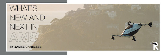 Star Wars Meets AMS: That’s the best way to describe Jump Aero’s JA1 Pulse rapid response eVTOL (www.jumpaero.com). This one-person, eight-engine biplane looks like something out of science fiction, due to its striking configuration and bold design. The JA1 even launches and lands with the pilot/flight medic standing straight up like Superman!