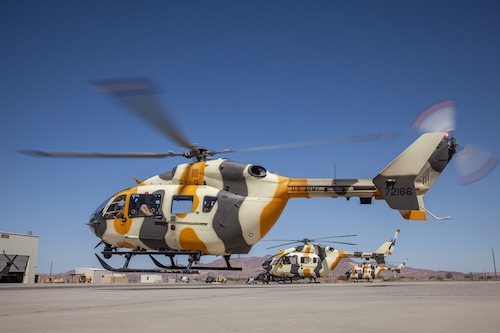 From 2011the UH-72A Lakota was introduced with B-Company and is currently operating five aircraft out of nearby Barstow-Daggett Airport. The aircraft are all painted in the ‘Bruised Banana’ color scheme and fitted with laser-sensors for the improved MILES-system on the skids and on the fuselage.