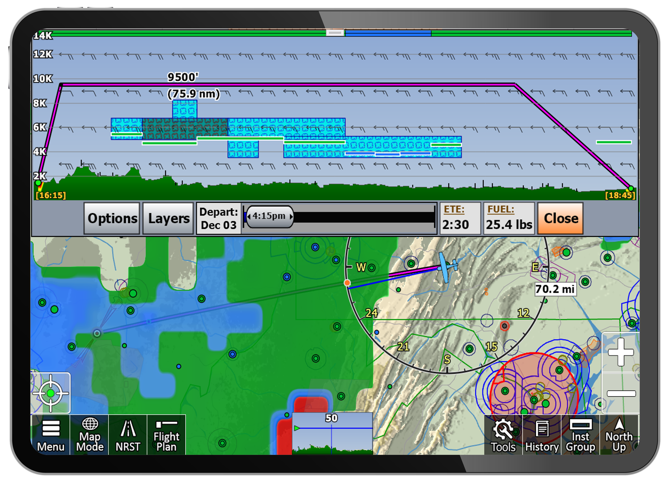 In addition, Version 13.2 introduces significant improvements to the Vertical Profile feature, including a “Layers” button that allows users to customize which data is displayed, and comprehensive cloud and flight rules information to enhance situational awareness throughout the flight. The weather display now syncs with forecasts, enabling pilots to view evolving conditions directly along their flight path.