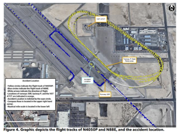 On November 18, 2022, about 1027 Pacific standard time, a Cessna 172M, N88E, and a Robinson R44, N4050P, collided over runway 30R at North Las Vegas Airport (VGT), Las Vegas, Nevada. The flight instructor and student pilot on board the Cessna and the student pilot on board the Robinson were not injured. Both aircraft were operated under the provisions of Title 14 Code of Federal Regulations Part 91 as instructional flights.