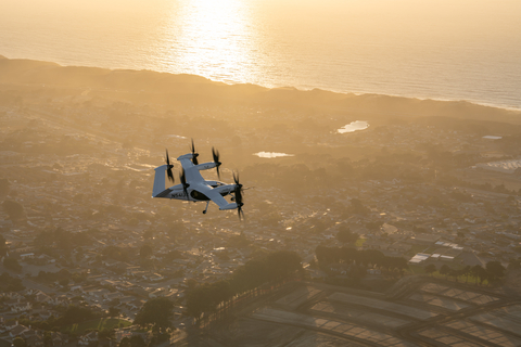 A Joby electric air taxi in flight above Marina, California. Photo: Joby Aviation