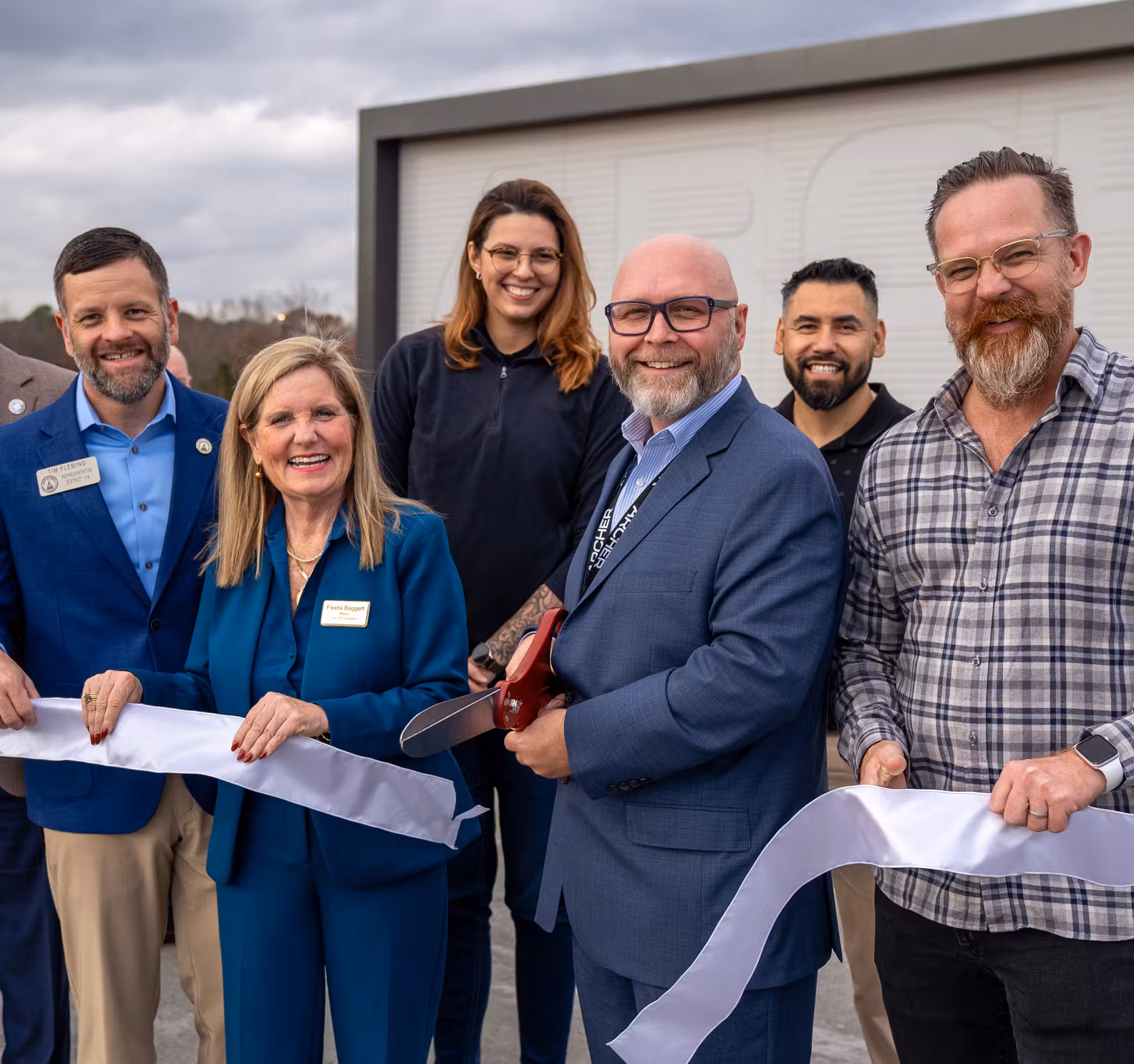 Image: Covington Mayor, Fleeta Baggett, State Rep, Tim Fleming, Newton County Development President, Serra Hall, Newton County Chamber President, Debbie Harper, Covington City Manager, Tres Thomas, Newton County Commissioner, Lanier Sims, and Archer VP of Operations, Glen Burks,were joined by several local leaders and Archer and Stellantis team members to commemorate the completion of construction on Archer’s high-volume manufacturing facility with a ribbon-cutting ceremony
