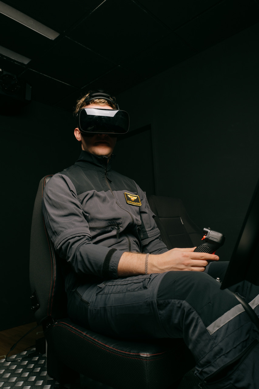 The VR goggles display D-World during day and night, which is a high-fidelity simulated world with realistic light-effects developed by multiSIM. This visual system has now been qualified under special conditions for VR as the second in the world, as far as we know.