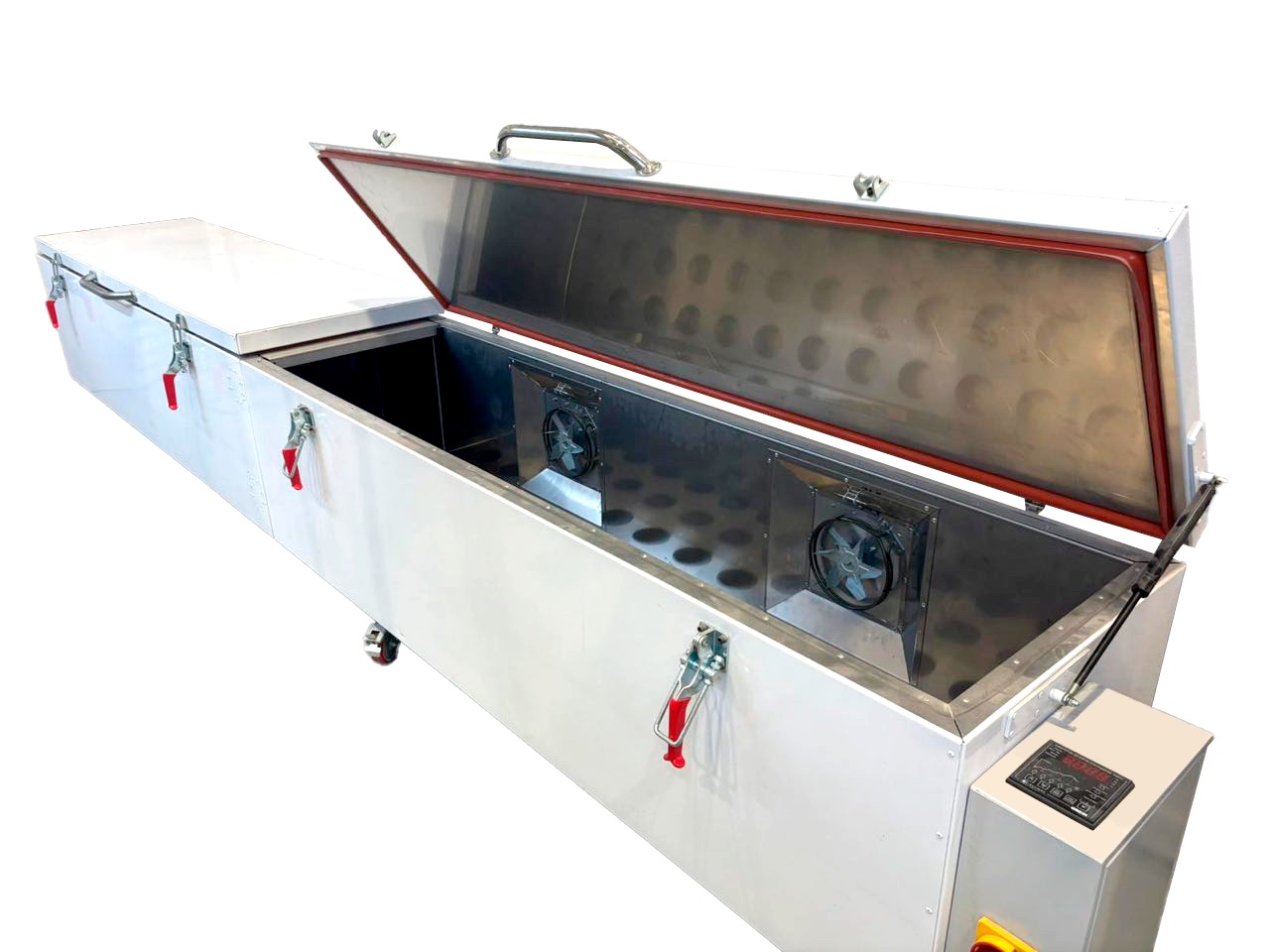 This top-loaded Oven-700-4000 will be used for composite curing parts and has a maximum oven operating temperature of 200°C. The work chamber dimensions of this oven are 700 mm wide x 4000 mm long x 700 mm high. Guaranteed temperature uniformity is ±5°C at set point 200°C.