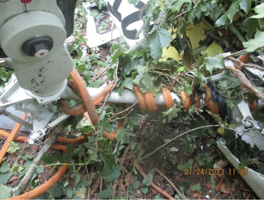 Figure 2. Long line wrapped around the helicopter main rotor driveshaft at the accident site. (Source: FAA)