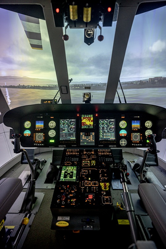 The simulator is equipped with the advanced ENVISION visual database and an ENWALL LED visual system, along with specialized mission training capabilities for firefighting, heavy-lift cargo, and more.