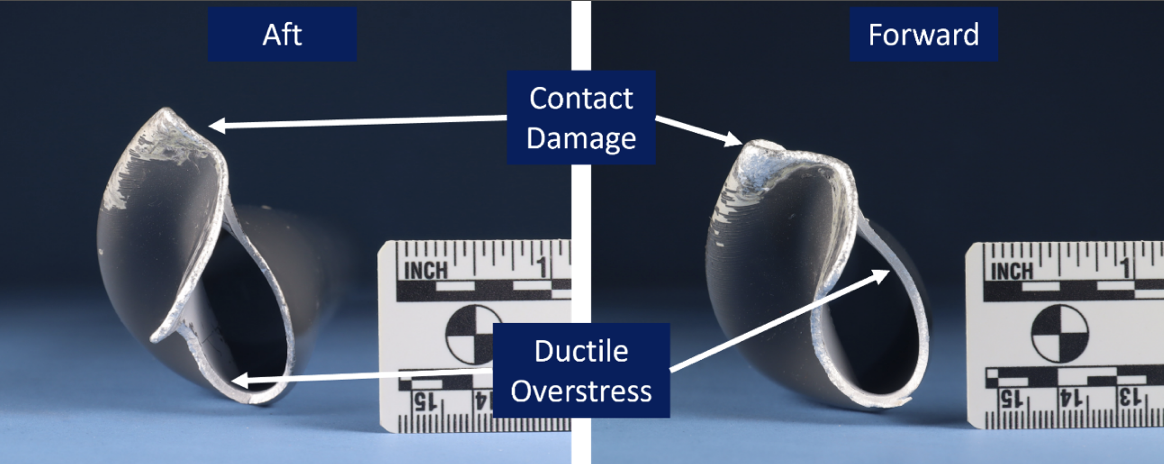 Figure 1. View of the tail rotor driveshaft fracture surfaces