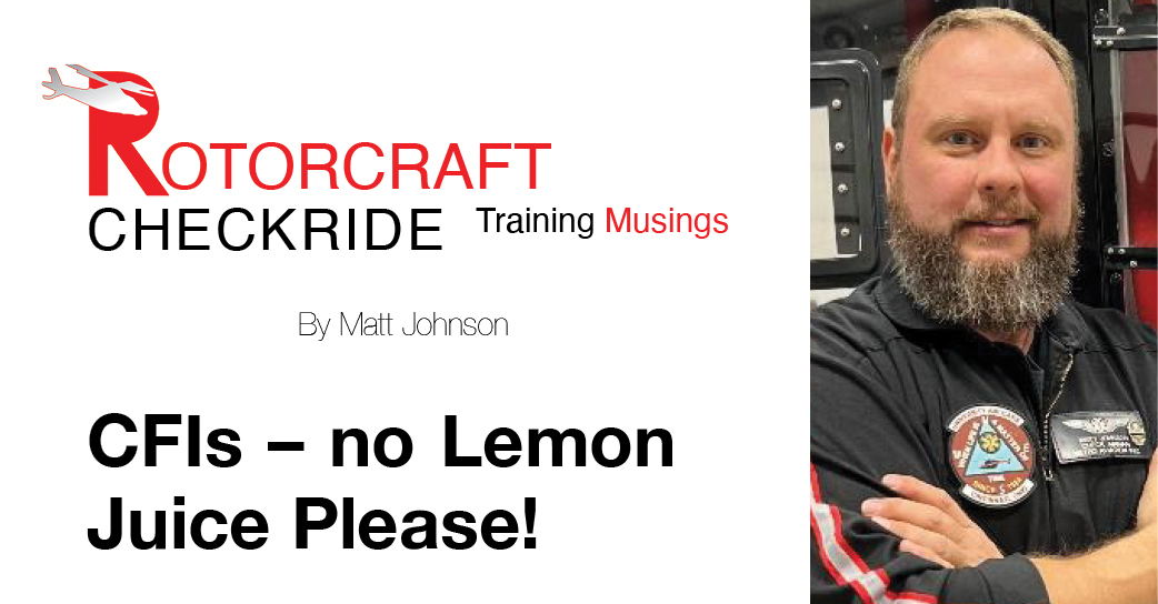 About the Author: Matt Johnson has been an FAA designated pilot examiner for over a decade, conducting exams ranging from Private to ATP and CFI. Additionally, he is a single-pilot IFR air medical captain and Part 135 instructor and check airman. He can be reached at [email protected] and via Twitter @HelicopterDPE