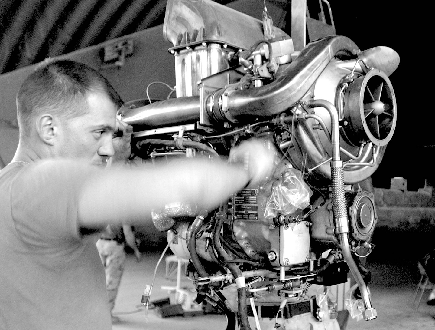 “Oh Pete, I’m covered up.” It’s not unusual to have a hangar full of helicopters and only a few mechanics.