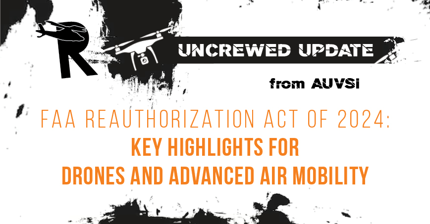 The Federal Aviation Administration (FAA) Reauthorization Act of 2024, which was recently passed and signed into law, requires the Agency to proceed with two items that are critical for industry: beyond-visual-line-of-sight (BVLOS) rulemaking for drones and the Special Federal Aviation Regulation (SFAR) for powered-lift electric vertical takeoff and landing (eVTOL) aircraft. Both regulatory updates will help grow the workforce of the future while advancing aviation safety.