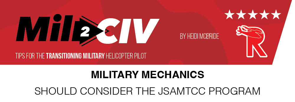 Army aviation maintenance technician (AMT) veteran, Cole Hokanson, says he is “Quite literally living the dream, working with my hands fixing helicopters, with an office view consisting of a wide open hangar door overlooking forest covered mountains, while living on a 50-acre rural property and spending quality time with my family.” Cole is currently an A&P mechanic for HAA company Air Evac Lifeteam, and he makes over $80,000 a year with a 401K and excellent vacation and health benefits. He landed this dream job after using the military’s JSAMTCC program to obtain his FAA airframe and powerplant (A&P) certificate.