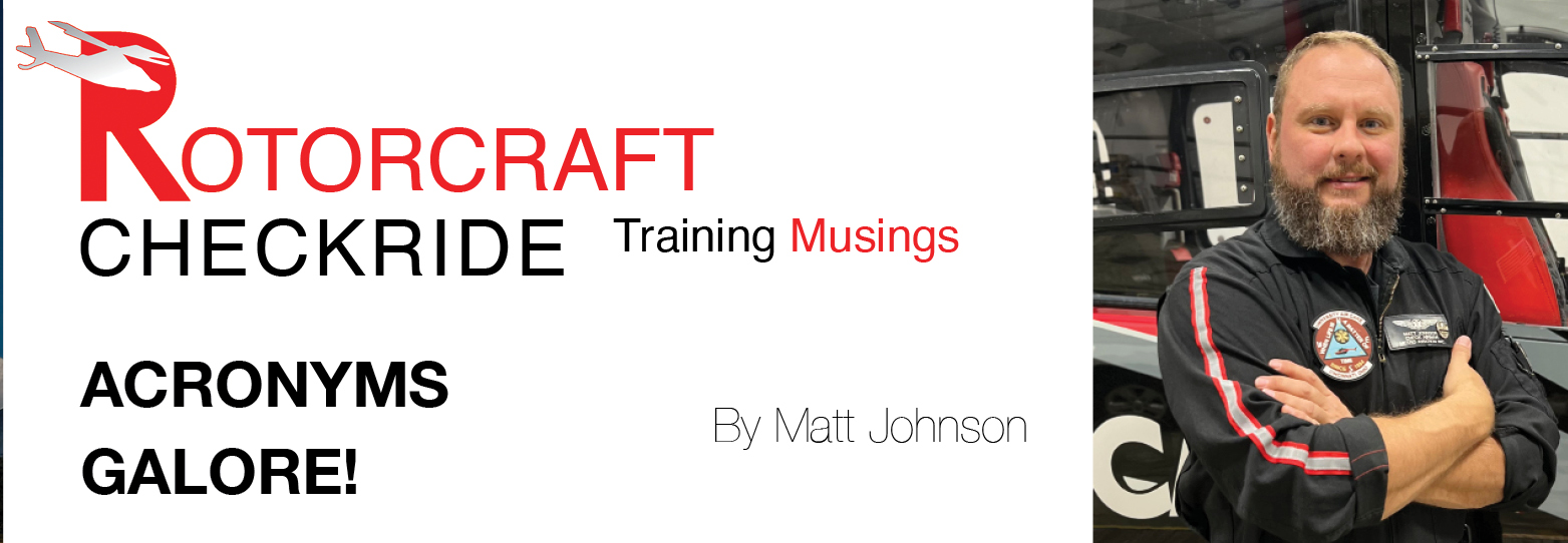 These memory aids, while effective at the table during the oral portion of the practical exam, can become a bit difficult to remember and correlate in the flight deck. In flight, I've observed that applicants often make it six or seven letters into the acronym before losing focus, sometimes needing to start over entirely while working through an in-flight inoperative equipment scenario. While I don’t have scientific data to support this, it seems that relying on longer acronyms to recall critical information in mid-flight can pose a cognitive challenge, especially in the dynamic environment of helicopter operations.